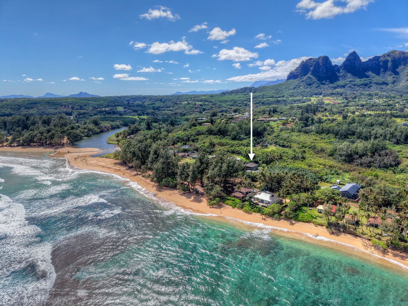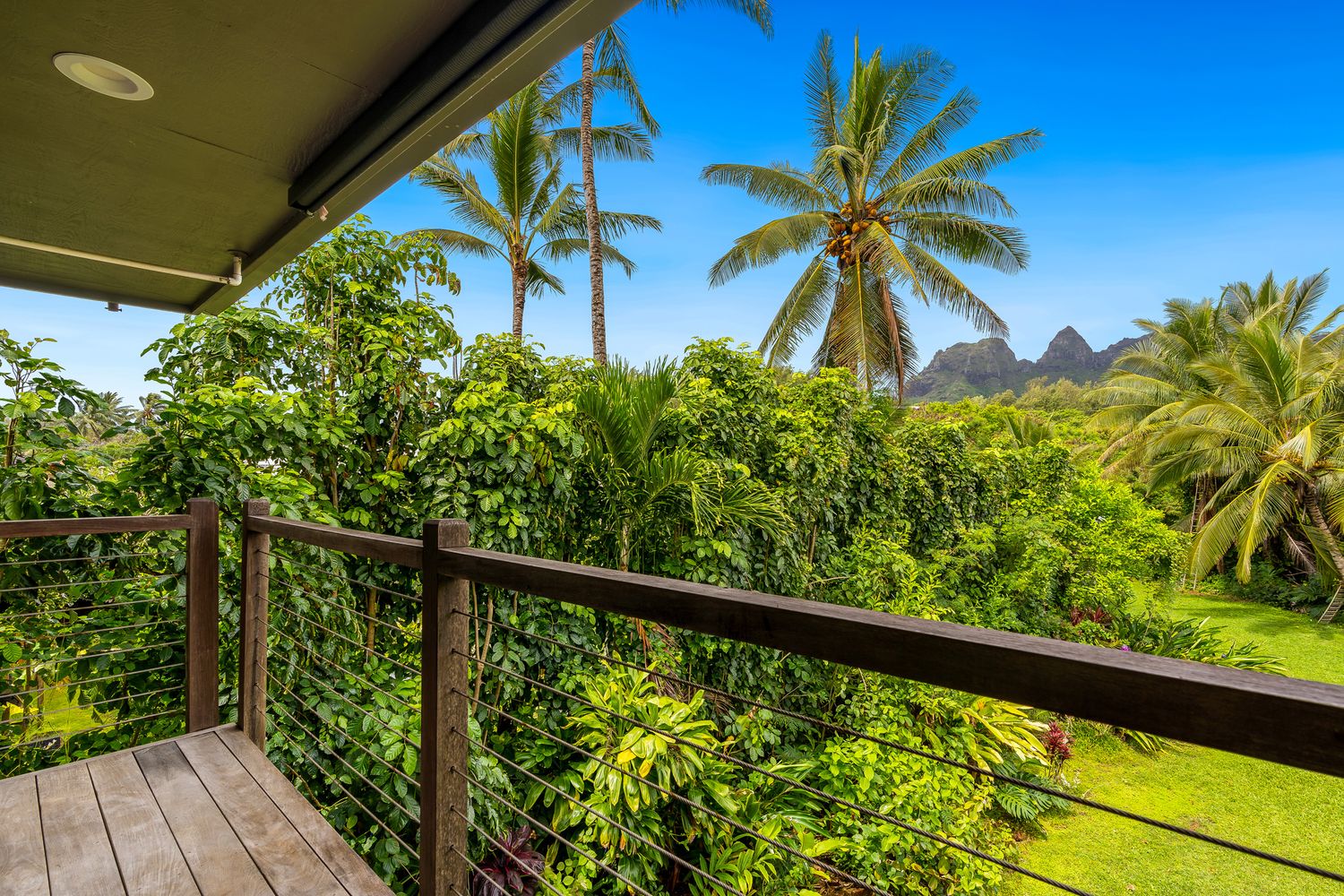 This beautiful 2-bedroom, 1.5-bath oceanview home is located in a quiet, low-density beachside community on Kaua‘i’s northeastern shore, designed for indoor-outdoor island living.