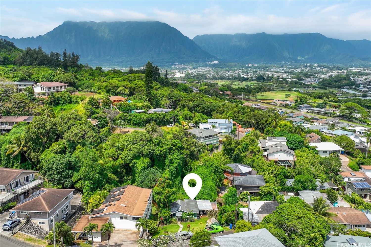 Beautiful lush green vegetation, perfect for growing and planting. It is located close to all that Kaneohe has to offer, with a country living feeling. Great starter home from the late 1940s, or it could be a great building site for your new home with beautiful Kaneohe Bay views.