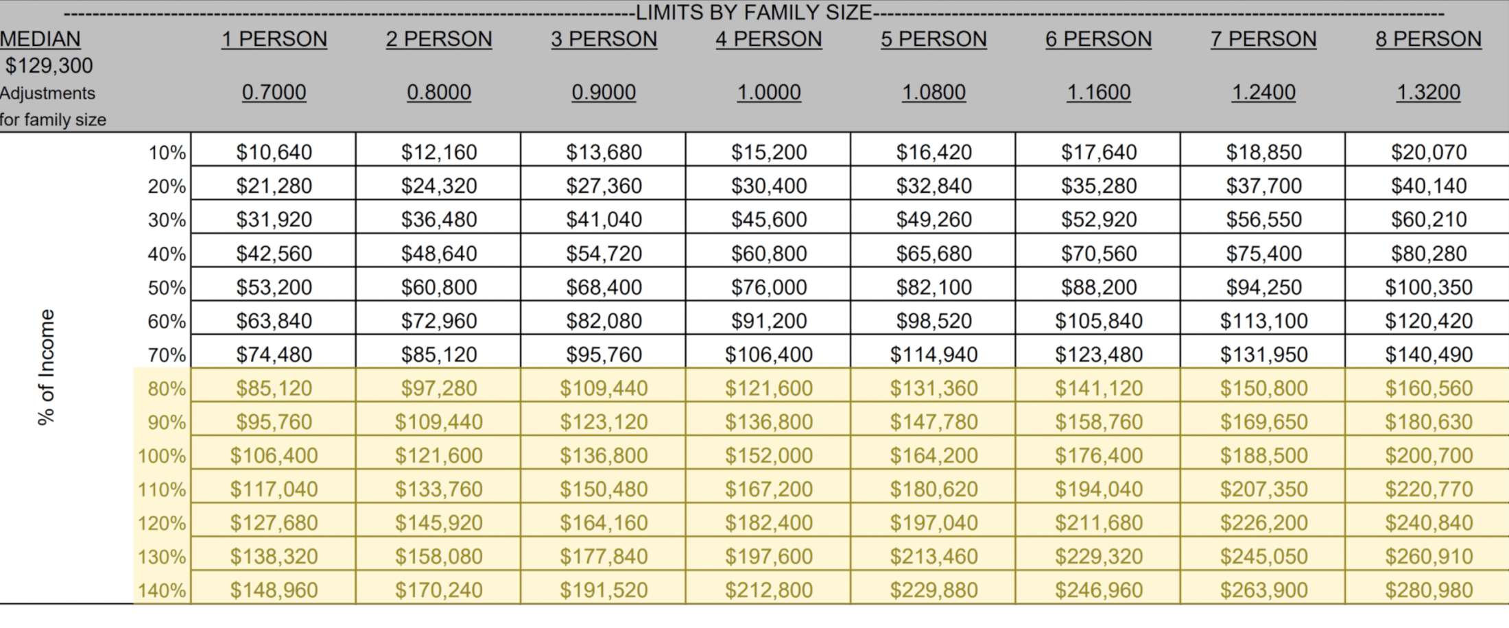 The most important factor is income. HHFDC uses Area Median Income (AMI), which is updated every year by U.S. Department of Housing and Urban Development (HUD).