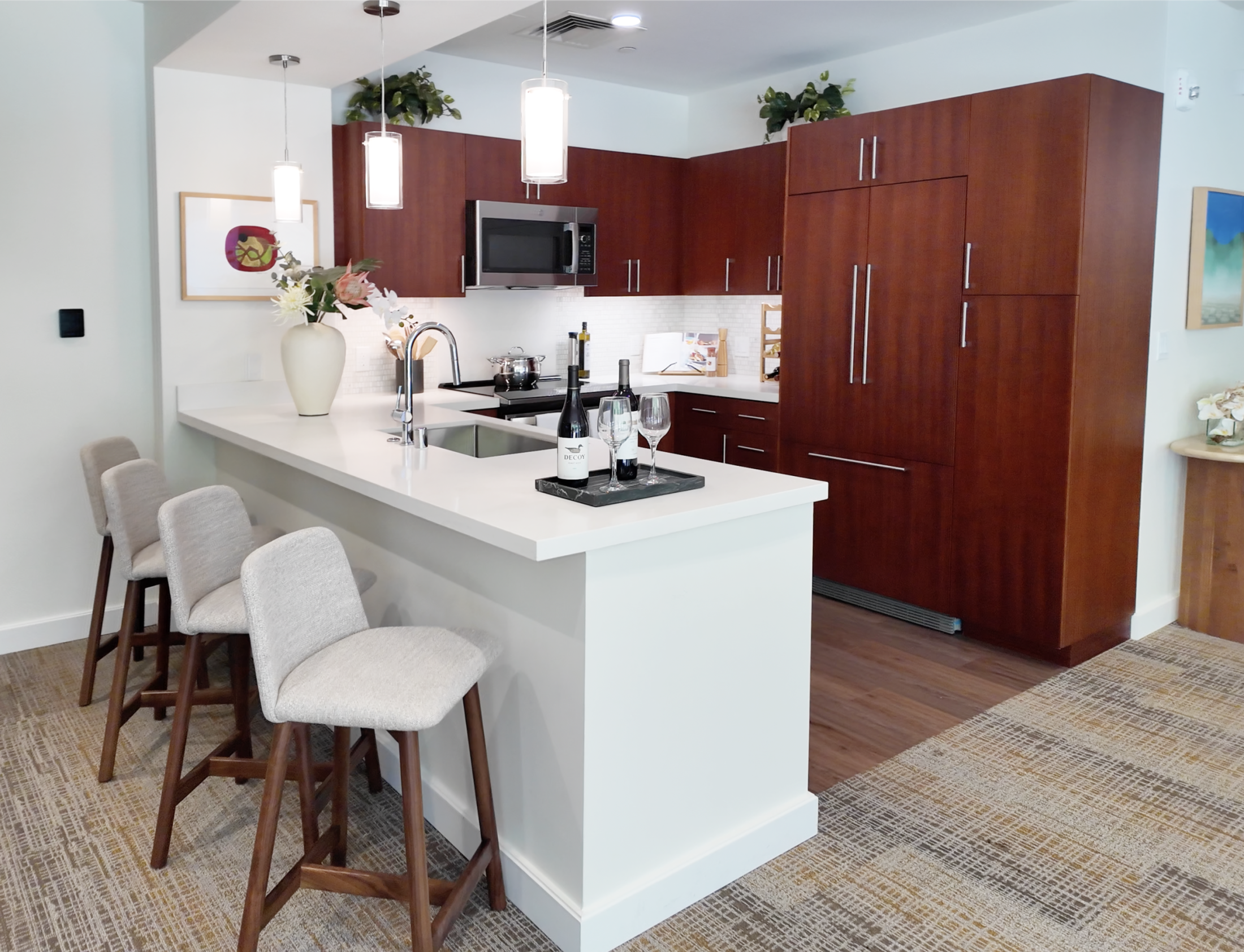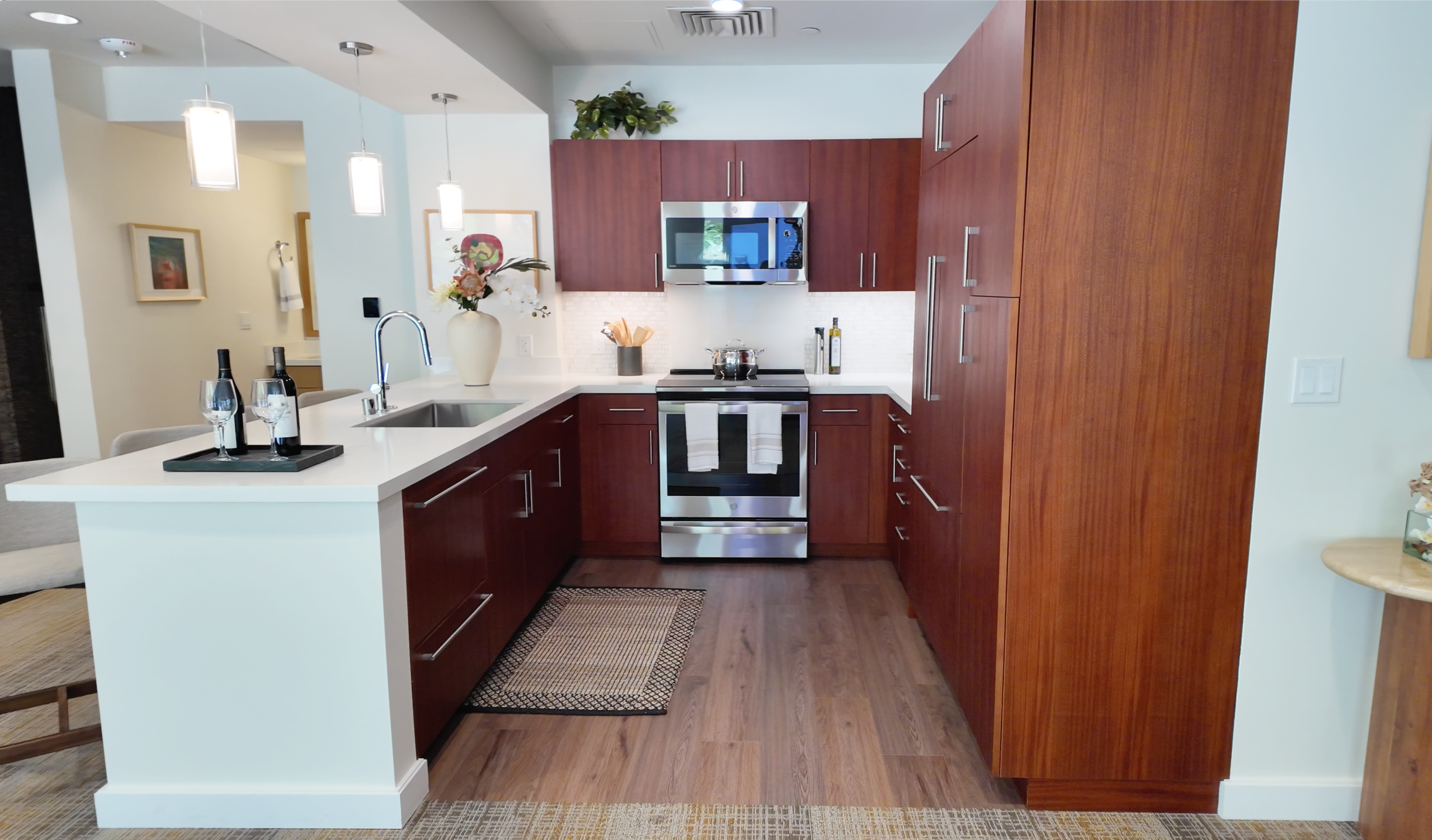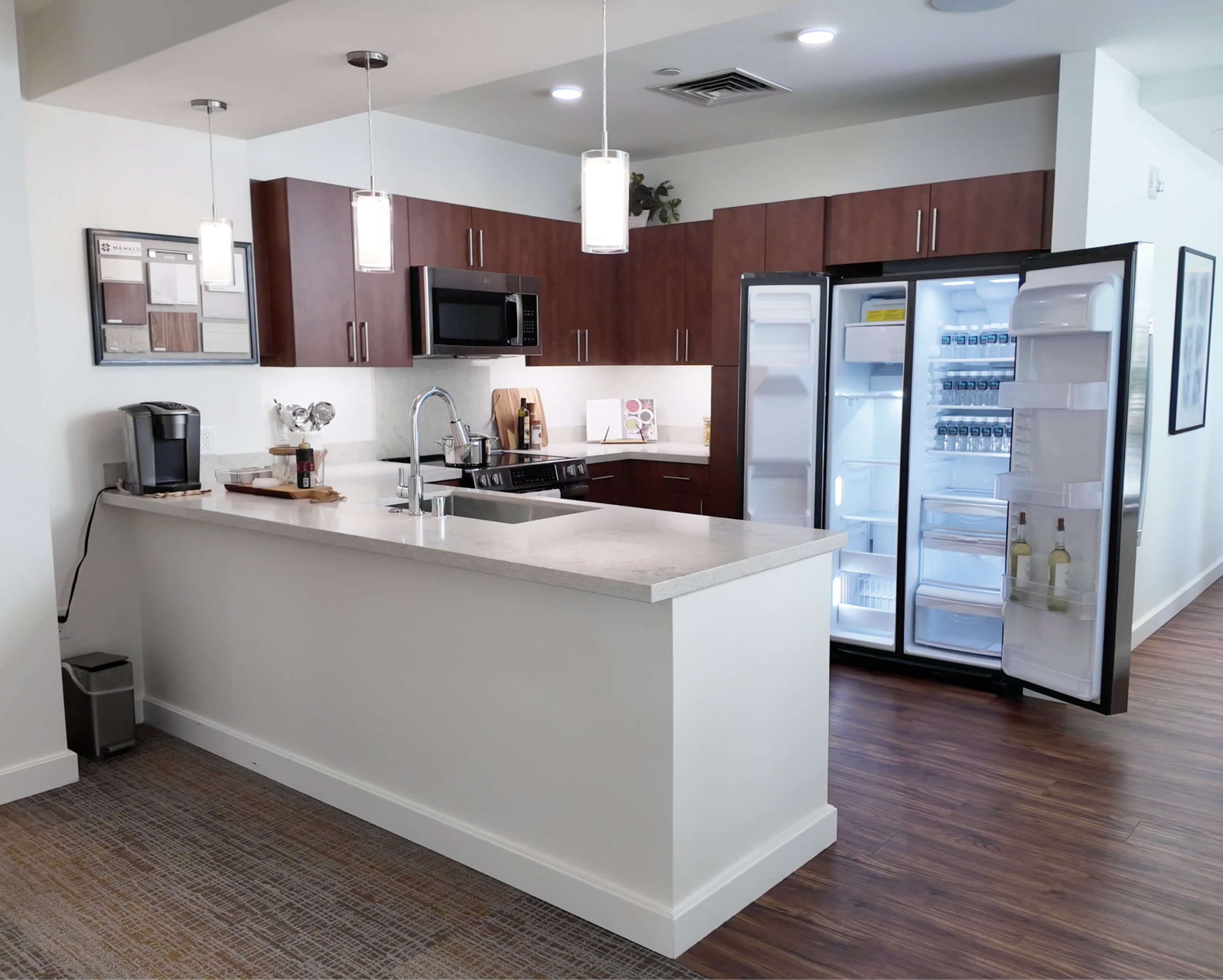 Here is the actual model for Lamakū market for-sale residences. This is a good representation of what Lamakū units will use for the light fixtures, appliances, materials, and ceiling height. Here, the ceiling height is 8 feet 5 inches, which is 2.565 meters tall.