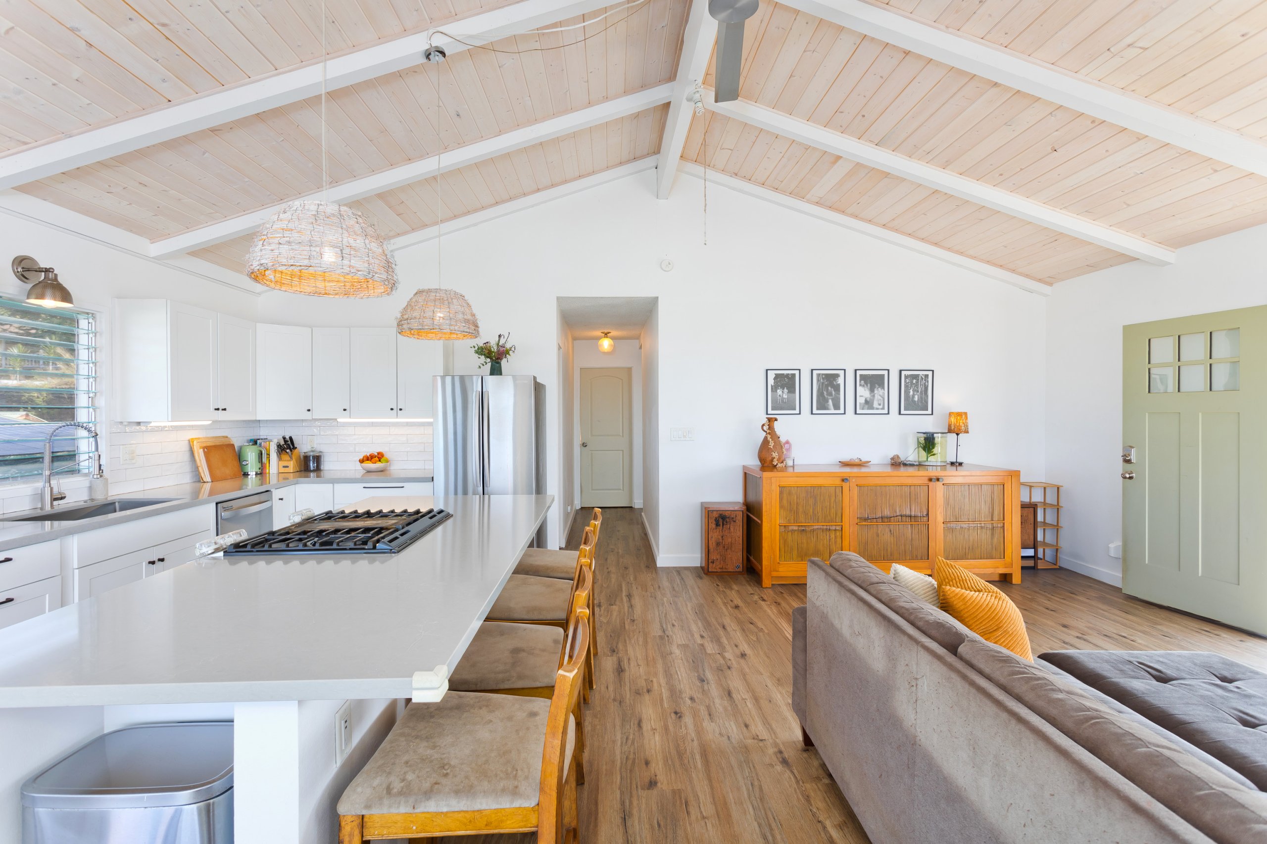 Renovated in 2019, the home includes updated appliances and thoughtful improvements that support comfortable island living. The primary bedroom features an en-suite bathroom with endless hot water thanks to the energy-efficient tankless water heater.