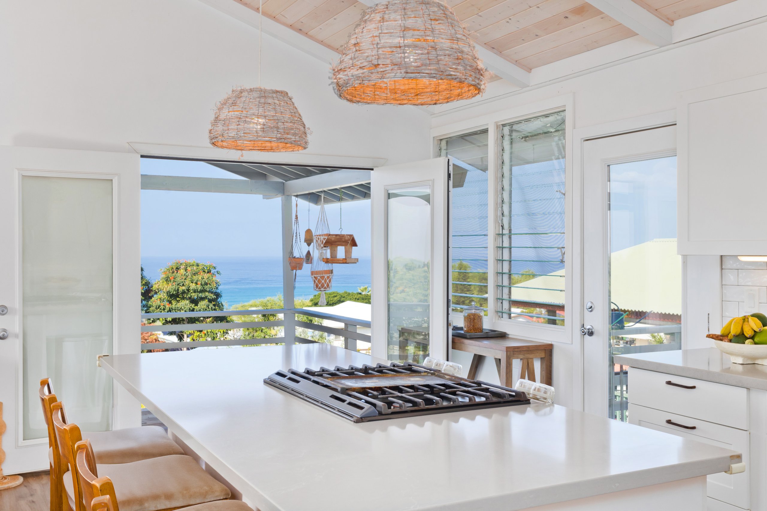 Outdoors, the lanai is the perfect spot to take in the ever-changing ocean horizon. The property also includes a stand-up chicken coop for those interested in fresh eggs or a small homestead lifestyle.