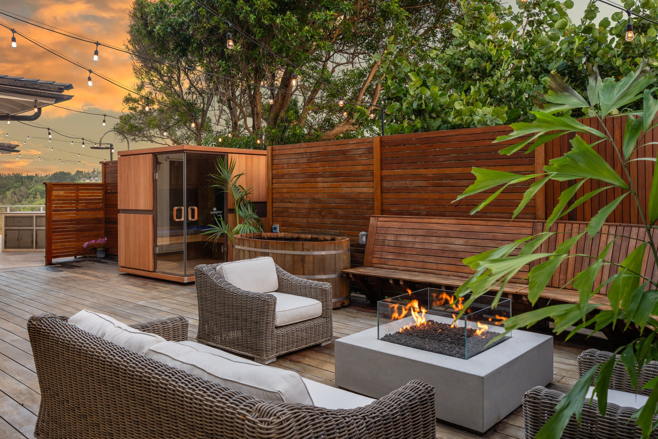 More and more Kauai homes are creating backyard retreats of their own. You’ll find a sauna tucked into the garden, a cold plunge hidden behind palms, maybe a hot tub under the stars — and right in the middle of it all, the outdoor shower.