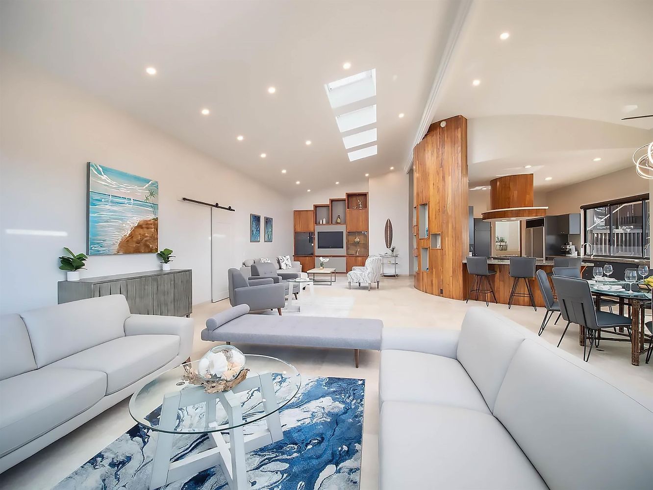 The 6-bedroom, 5-bathroom home offers 4,097 square feet of thoughtfully designed living space with neighboring island views. Carefully expanded and updated, it features vaulted ceilings, high-quality finishes, abundant natural light, and seamless indoor-outdoor flow. Three primary en-suite bedrooms provide excellent flexibility, including two on the main level with private entrances for guests or multi-generational living.