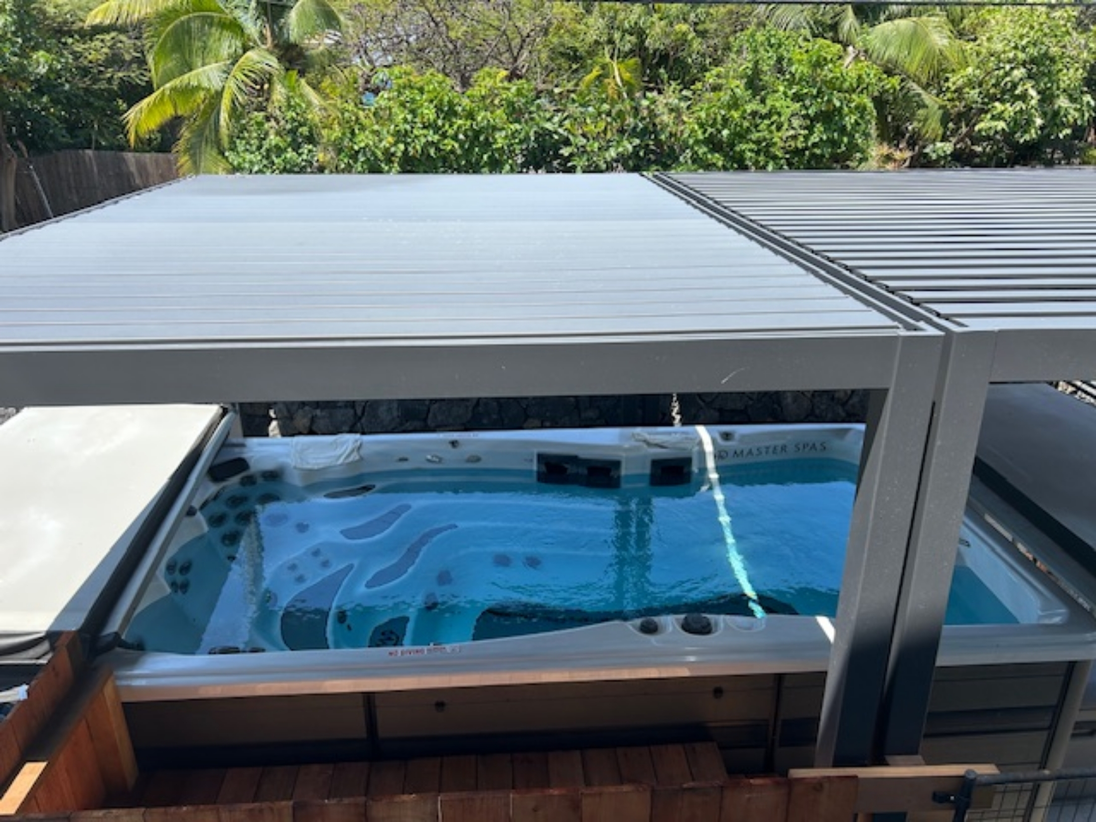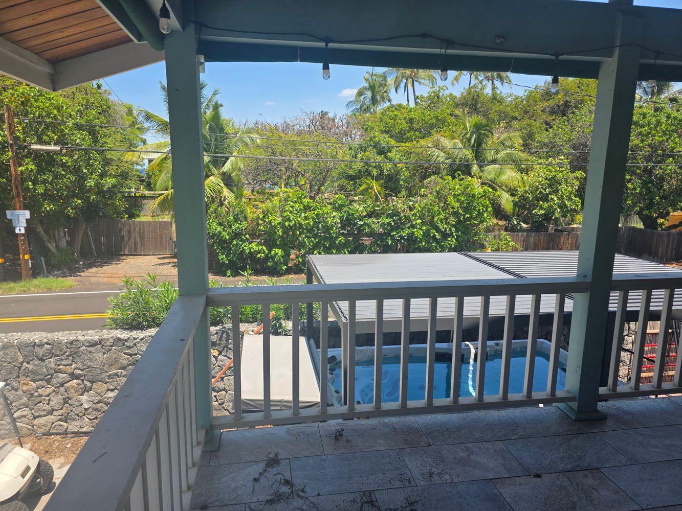 A spacious covered upstairs lanai provides a comfortable setting with a peek of ocean views.