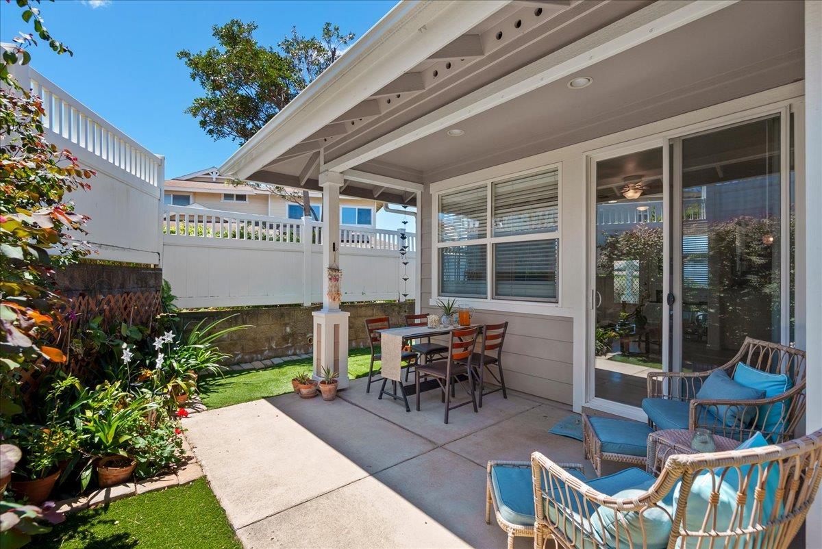 The property also includes a beautifully manicured fenced backyard with a covered lanai.