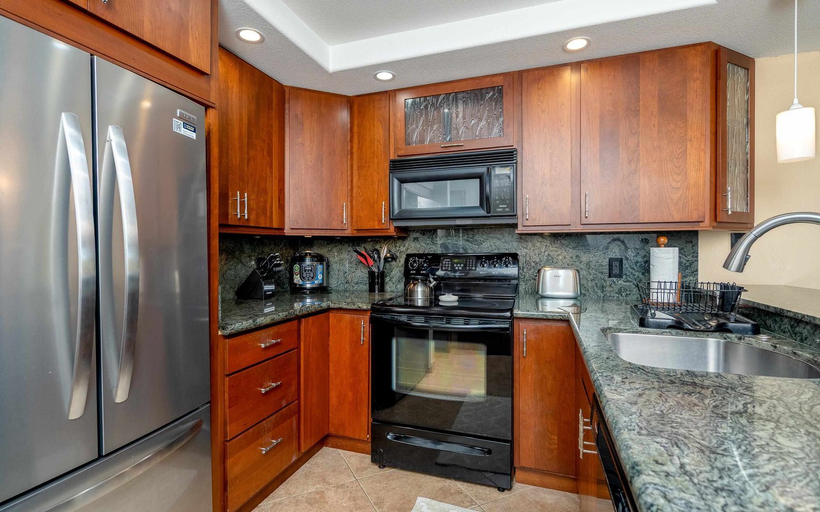Excellent location toward the front of the complex, this extra wide 1 bedroom, 2 bathroom has a nicely updated kitchen with oak cabinets that open into a very spacious living room. The outdoor greenbelt gives the living room lanai a great sense of space. Maui Kamaole offers many amenities including 2 pools, 2 hot tubs, storage for kayaks and paddle boards and BBQ Grill areas for each cluster. Call...