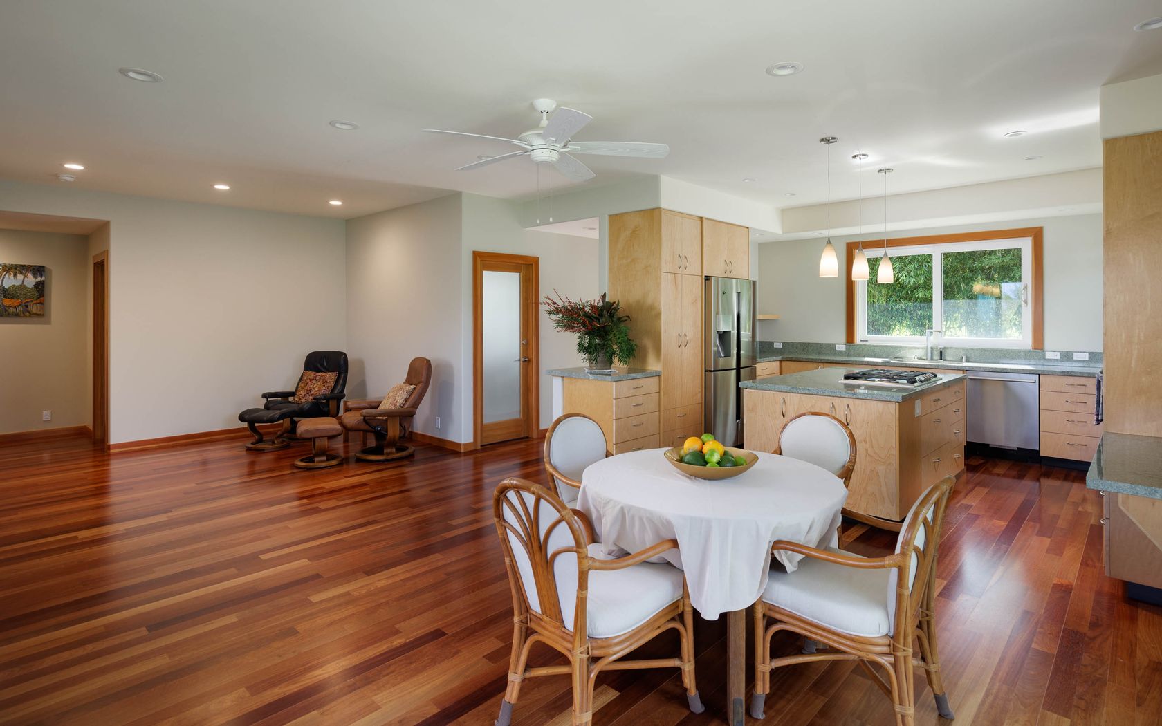 Built in 2020, this bright and thoughtfully designed residence in Kohala by the Sea captures sweeping ocean and sunset views through a refined indoor-outdoor layout. Retractable mahogany pocket doors frame the horizon and open the main living space to an expansive 1,255 sq ft covered lanai, creating a seamless setting for entertaining or relaxed island living. Ten-foot ceilings with tray detailing...